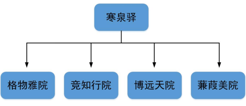 “寒泉驿”下设格物雅院、竞知行院、博远天院、蒹葭美院四大书院,分别对应探究学习型、竞技运动型、政经时事型和文美艺术型兴趣活动。