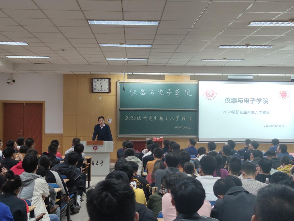 和学科的历史沿革、发展演变和仪电气质,大力倡导新青年创造“两个人生”、锻炼“三个能力”,引领青年研究生要始终饱含爱党爱国的深厚情怀,坚定秉承创新开放的精神气度,不断发扬勤勉实干的工作作风,勇于担当科技强国的时代重任。之后,其他院领导分别讲解了仪器科学与技术、电子科学与技术两个一级博士授权学科的特色建设、主要成果、发展前景及就业形势等情况,宣讲了研究生学位条例、硕士直博政策和要求、评优奖励制度和办法、违纪违规处分条例等内容,学生关心关注的内容进行讲解;强调了禁止学术道德败坏、学术行为不端的现象,要求研究生高度树立保密安全意识,警醒同学们坚守底线思维,坚决远离网络平台贷款,时刻警惕电信电话电脑等各类新型诈骗,积极做好疫情防护与防控工作及肺结核等传染病及流行病的筛查、治疗和预防,基本对研究生新生同学们在思想政治、学科专业、学术道德、安全与保密、奖励政策、推免政策、校规校纪及疫情防控、传染病预防等等方面进行了全方位、全覆盖教育和引导。