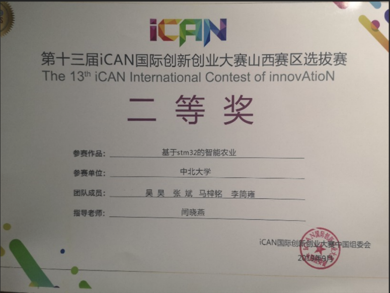 ● 2019年第十三届ICAN全国大学生创新创业大赛 省级二等奖