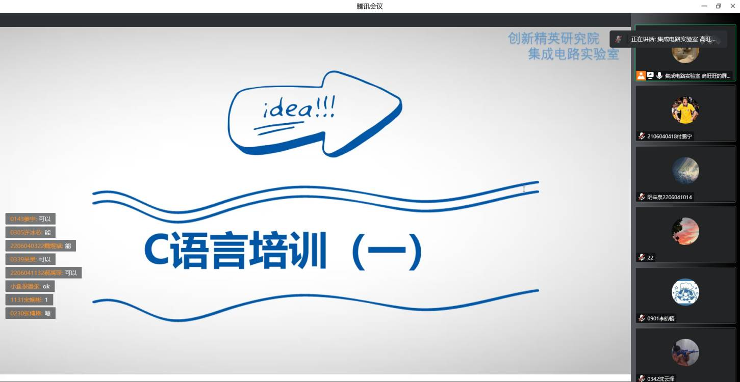 本次普及培训由集成电路创新实验室主席高旺旺主讲,所讲解的内容为C语言的入门知识。高旺旺学长先从C语言的历史、什么是C语言以及C语言的地位等方面入手,全方位地为同学们介绍了C语言。后又用最简单的“hello world”程序为例,给同学们讲解了一些简单的C语言操作符。