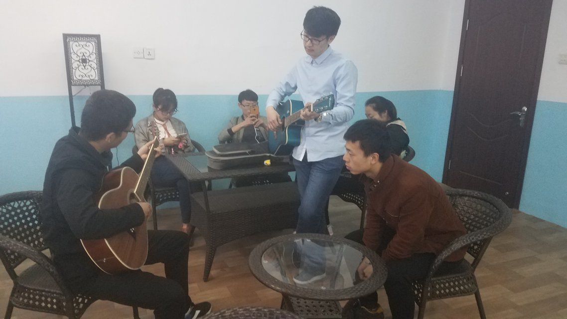 此次活动,绘心阁邀请了我校吉他社团的成员作为此次心理沙龙的嘉宾,传授给同学们一些弹吉他的简单技巧。活动过程中,传授者详细耐心地讲解,学习者静静聆听。随后,参与学习的同学们开始尝试亲手拨动琴弦,吉他社的成员在一旁耐心地指导,弹奏者与聆听者共同构成了一幅温馨和谐的画面。