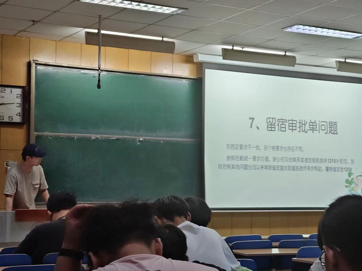 随着夏日的炎热逐渐侵袭,暑假的脚步也悄然而至。阳光明媚的日子里,学生们纷纷结束了紧张的学习生活,迎来了期待已久的假期,但也有许多学生选择留在学校宿舍复习或进行其他活动。为了确保学生的安全,我院于2024年7月5日举办了2024暑期留宿宿舍安全主题教育活动。