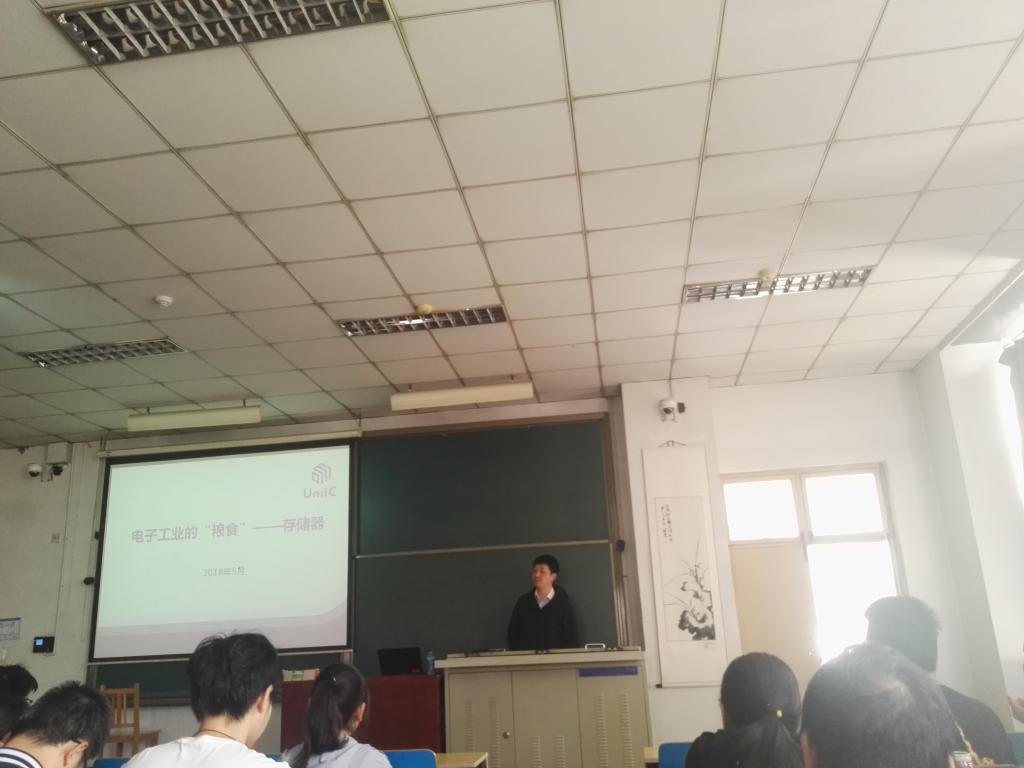 全体2015级微电子科学与工程专业学生在11312教室参加了主题为“电子工业的‘粮食’—存储器”的专业知识讲座,此次主讲人为西安紫光国芯副总经理于晓。参加此次讲座的还有微电子科学与工程专业学科部副主任梁庭老师,微电子专业崔丹凤、耿文平、黄堃、郭靖几位老师。西安紫光国芯的核心业务是存储器设计开发,自有品牌存储器产品量产销售,以及专用集成电路设计开发服务。同时还承担着国家科技重大专项“核高基”和国家高技术发展计划“863”等多个存储器领域的重大专项研究项目和课题。