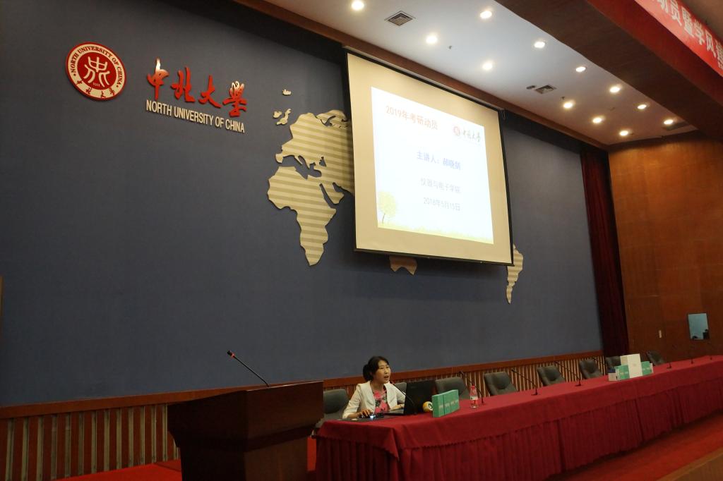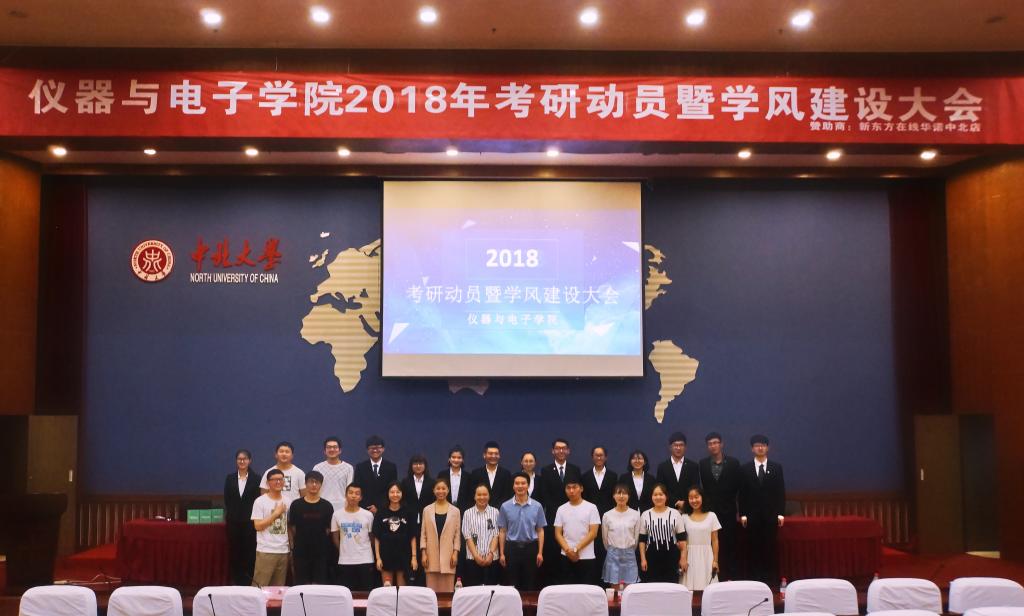 在图书馆五层举办了2018年考研动员大会暨学风建设大会,240多名同学参与本次大会。仪电院党委副书记高宏图、副院长郝晓剑、新东方20周年功勋教师王晟、学生科老师李晨鑫出席本次大会并与同学们进行了深入的交流。