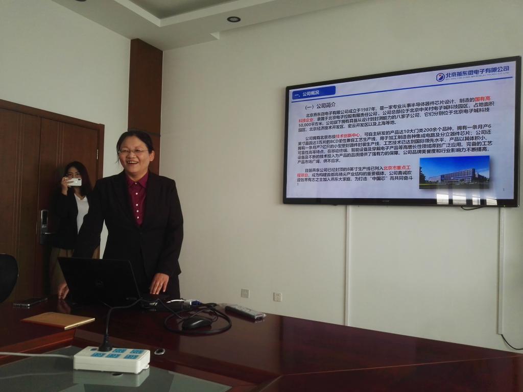 4月11日上午九时准时到达北京燕东微电子有限公司,燕东是一家专业化的集成电路设计、制造、销售于一体的IDM高科技企业,已经发展成国内领先的模拟集成电路及分立器件制造商。燕东人事主管为同学们细致地讲解了燕东的发展规划,近几年澳门太阳城