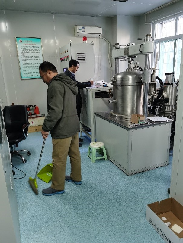 2019年11月11日,先进测试与系统集成党支部党员聚集于电子测试技术重点实验室大厅前,对超高温实验室进行清扫,清理实验室堆放杂物,排查1500℃、1000℃温度/压力复合测试平台的使用规范并排查其安全隐患,对实验室存放的氢气环境气体进行妥善安放并采取了专人专管的措施。