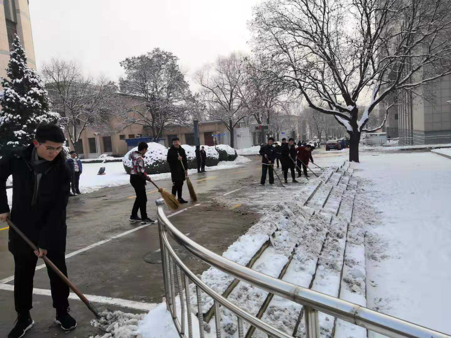 党委响应校党委的号召,组织各支部党员、发展对象和积极分子同志,对科研楼、14号楼、重点实验室周边及道路开展了“清扫校园积雪,创设美好环境”主题党日活动,确保道路的畅通,方便师生出行。