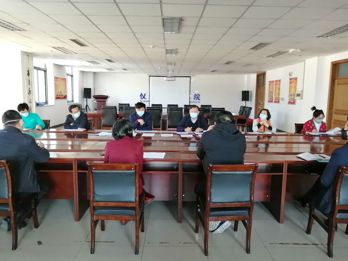 赵副校长指示:在工作中要做到:既要防疫,也要保证教学科研的有序进行;要提高政治站位、加强值班值守、增强责任感和紧迫感;统筹推进、多措并举,确保疫情排查不留死角、不出现盲区。刘俊院长以“四坚持、四到位”对仪电学院的工作做了总结:一坚持学思践悟,做到思想认识到位;二坚持统一指挥,做到组织领导到位;三坚持全面覆盖,做到防控措施到位;四坚持多措并举,做到责任落实到位。