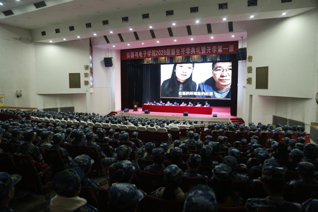 开学典礼结束后,院党委书记郝晓剑为全体2020级新生讲授开学第一课。第一课由传承军工报国仪电精神、践行立德树人根本任务、谱写新时代的青春之歌三个部分组成。在第一部分中,郝书记为在场师生介绍了学院的办学特色、发展历程、师资队伍、教学科研成果等内容;在第二部分中,她介绍了学院特色鲜明的办学宗旨、内涵丰富的三全育人格局和十大育人体系、一素质三能力特色育人机制、本科生三大培养主线、2.5+1.5培养方案、创新精英研究院等内容。在第三部分中,她介绍了涌现在学界、政界、商界等领域的杰出校友,在党建思政、学科竞赛、学术成果、文体比赛、社会实践与创业等方面的优秀在校生,并从做事、做人两方面为全体新生送出希望与祝福。