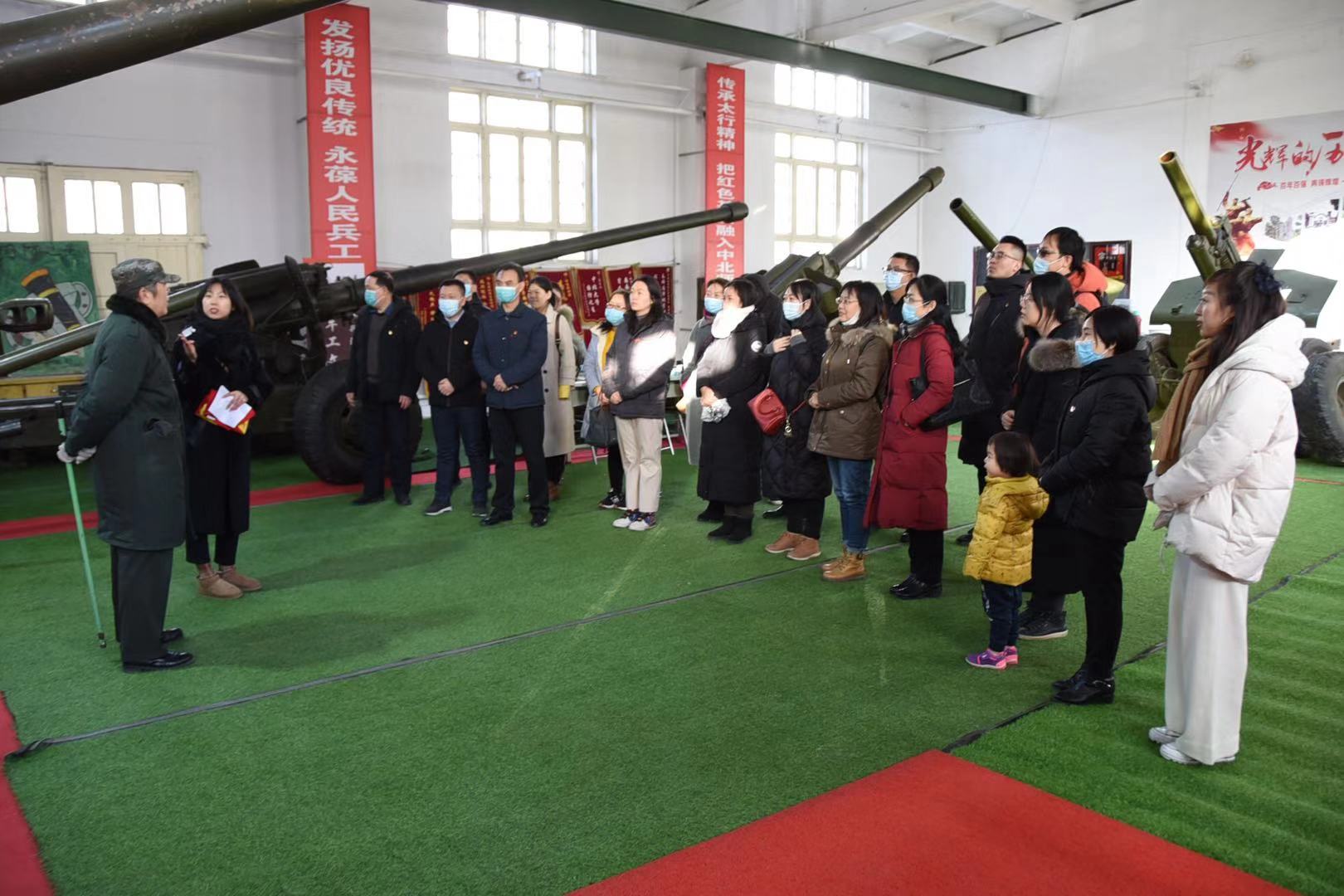 山西林业职业技术学院老师们首先来到学校军工文化园——火炮陈列室进行参观。在讲解员葛双喜老师的带领下,大家有序步入陈列室,认真观看了陈列的火炮等兵器,葛老师声情并茂、激情澎湃地对各种武器装备进行了讲解,并带领大家重温并朗诵了毛泽东主席的诗词《西江月·井冈山》。教师党员们边观看,边讨论,在回望中国共产党领导革命战争的烽火硝烟中,感受英雄前辈们百折不挠、不畏牺牲的优良作风以及为了研发先进的武器装备艰苦奋斗、勇攀高峰的崇高精神。