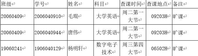 2、请各班班长在查课统计时,认真核实本班情况!一旦确认就视为承认本次查课结果,一切责任由班长负责,若各班因班长未留下来核实而出现误报,责任将由各班班长承担,学风建设部概不负责;本周被误报者请找各班主任反馈给学风建设部相关人员更正。