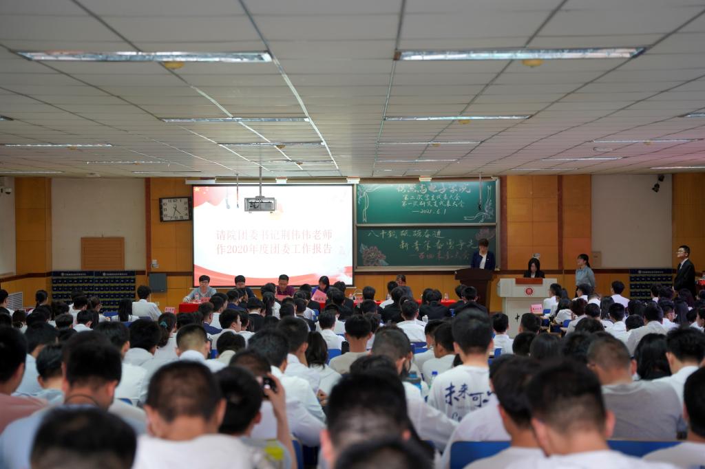 团委书记荆伟伟向大会作2020年度团委工作报告,介绍了过去一年中学院团委取得的工作成果,学院团委也成功在上一年度团委工作考核中获得“五四红旗团委”荣誉称号。学院副院长唐军结合时代特点和学院发展状况为广大学生致青年寄语,希望同学们能够把握好学习机会,在习近平新时代中国特色社会主义的引领下不断前进,成为一个对国家对社会有贡献的新时代青年人。