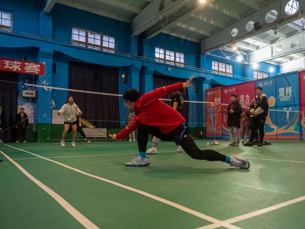 在小组赛中的对手依次是大数据学院和研究生院,比赛刚开始,双方选手就开始了激烈的拼杀。高远球、扣杀、劈杀、吊球等各路球技被他们演绎的淋漓尽致,比分不断变换,最终仪电学院的同学技高一筹,在小组赛中胜出,获得了参加淘汰赛的资格。