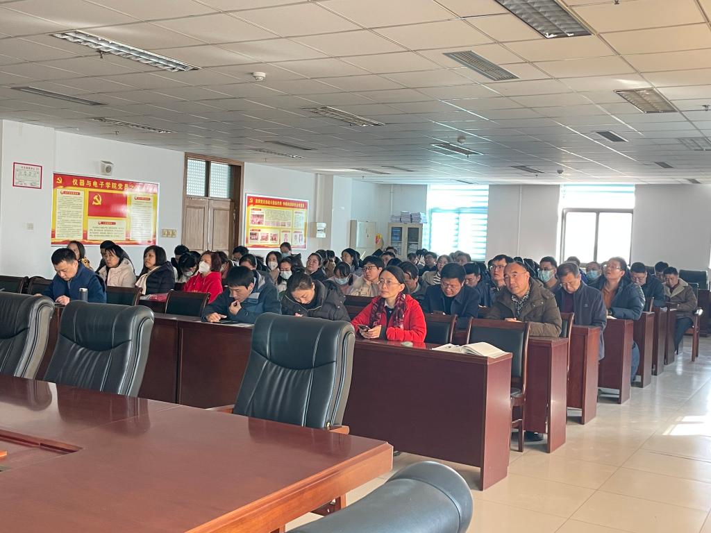 在开学的第一天召开全员教工大会。仪电人齐聚在学院1115会议室,盘点2022年的收获,谋篇布局2023年的新征程。会议由学院副书记杜瑞平主持。
