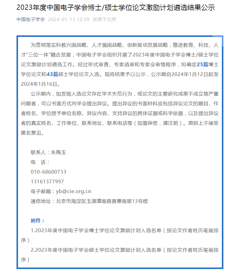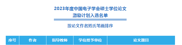 中国电子学会组织开展了2023年度中国电子学会博士/硕士学位论文激励计划遴选工作,于2024年1月12日公布入选结果,澳门太阳城20级硕士张锦涛同学成功入选。