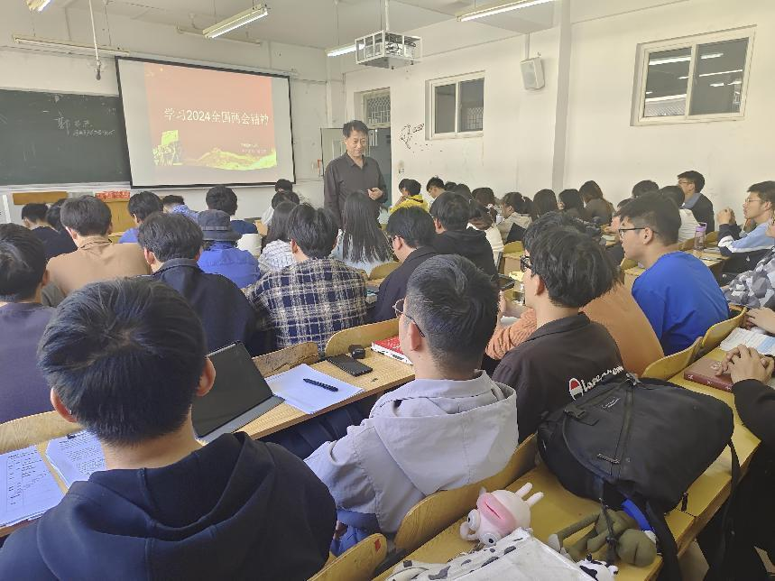 21060145班在10301Z举行“学习两会精神,做时代青年”主题班会。班级人生导师,离退休工作部党委书记、部长郭书杰莅临现场,深入到学生中,对两会精神进行了深度的剖析和解读。