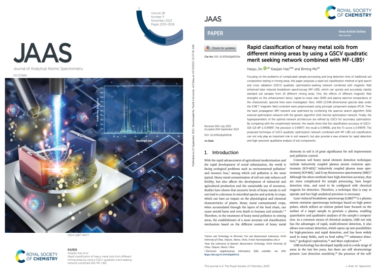 他专注学科前沿,将自身所学与山西省全方位高质量发展联系起来,硕士期间发表SCI/EI高水平学术论文7篇,以第一作者身份在光谱学1区Top期刊JOURNAL OF ANALYTICAL ATOMIC SPECTROMETRY发表论文2篇(其中1篇被选为封面文章、1篇入选JAAS-2024-Hot Article并被拟推荐为封面文章)。该同学的研究工作得到了同行的关注和支持。