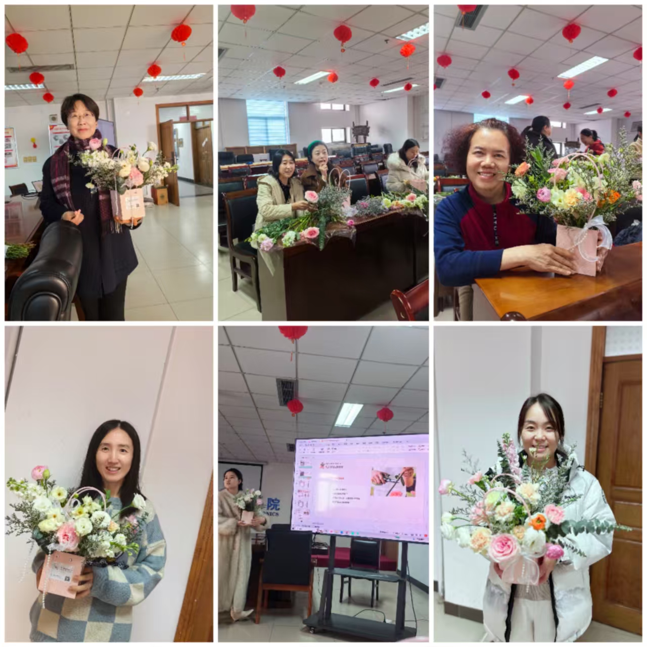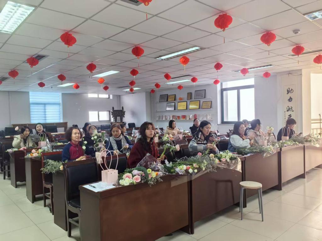 活动最后,大家进行了作品展示与交流,分享创作心得,并合影留念。女职工们纷纷表示,此次活动不仅让她们学到了插花技巧,更在花香中感受到了生活的美好和节日的喜悦。