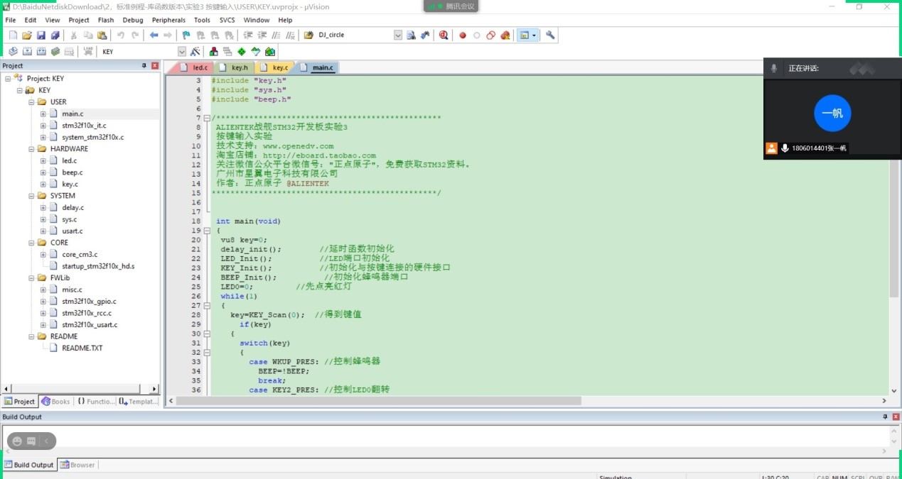 2021125仪器测量实验室展开了20级新生的第二次STM32单片机培训。此次培训着重讲解了如何写一个完整的STM32单片机程序。张一帆同学是本次培训的主讲,此次培训从最简单的点亮LED小灯的程序入手,手把手讲解如何搭建新生们的第一个STM32工程。同时也讲解了基本的32程序书写步骤、书写逻辑和各个文件的调用关系等,十分详细,新生反应积极。然后又讲了按键程序,带领新生一起理清楚了按键代码的思路。