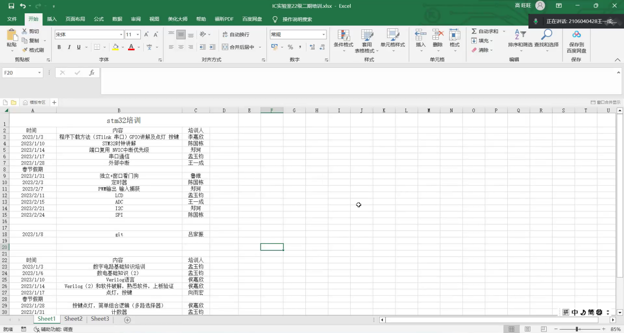 本次例会召开人为实验室主席高旺旺,21级副主席参加了本次会议。本次例会主要是说明与讨论了寒假对22级同学进行stm32培训的相关事宜。实验室准备利用寒假时间,加紧对22级同学的培训,帮助同学们尽快掌握实验室需要学习的内容。