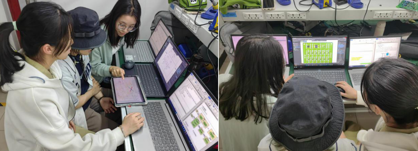 在实训过程中,同学们互帮互助,分工明确,形成了良好的团队意识,组间保持良好的竞争与合作关系,共同攻克难题。
