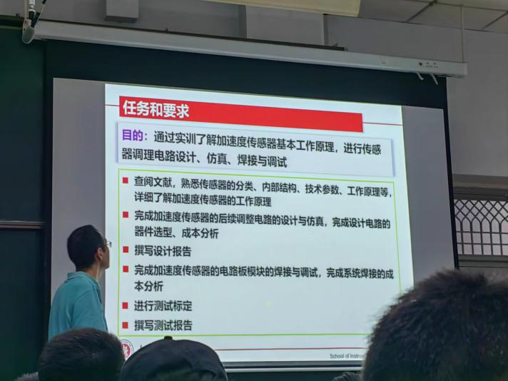 4月15日加速度传感器模块的理论课上,赵锐老师、刘丽双老师与温焕飞老师为同学们系统分析了加速度传感器模块的任务要求以及设计报告的撰写要求,同时布置了设计部分的相关任务,将整个设计部分分为两个任务:“需求分析”和“建模仿真”,最后各小组以PPT答辩和提交设计报告的形式进行设计部分的成果验收。同时针对同学们在方案设计过程中遇到的各种问题,老师们耐心地引导学生找到适宜的解决方案,加强同学们将理论和实践相结合的能力