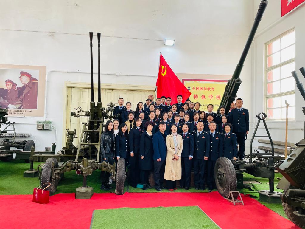 中北高新技术产业开发区党员同志一行首先来到学校军工文化园——火炮陈列室进行参观。在讲解员葛双喜老师的带领下,大家有序步入陈列室,认真观看了陈列的火炮等兵器,葛老师声情并茂、激情澎湃地对各种武器装备进行了讲解,并带领大家重温并朗诵了毛泽东主席的诗词《西江月·井冈山》。葛老师的讲述带领着大家又重新回到了抗日战争、解放战争那些岁月,再次点燃了大家传承革命精神,永葆革命斗志的蓬勃热情。