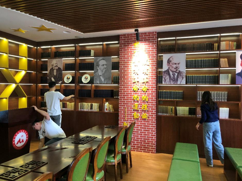侯凯耀、刘昊东和陈梦旎同学在图书馆马克思主义书屋参加义务劳动,为书屋打扫卫生,以实实在在的行动深化党史学习教育,践行“我为群众办实事”的初心。
