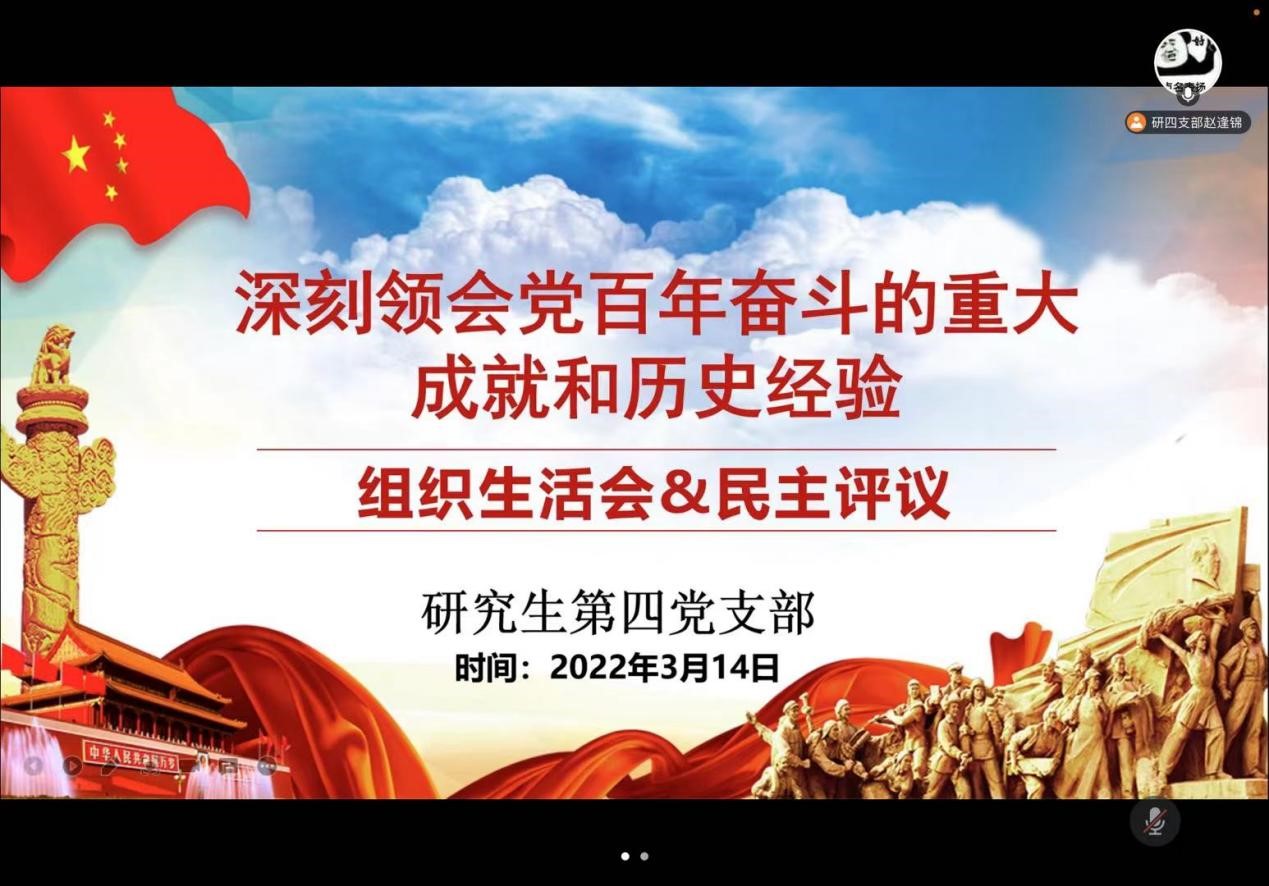 研四支部于3月16日在线上召开组织生活会以及开展民主评议党员的重要会议,会议深入学习贯彻习近平新时代中国特色社会主义思想,学习贯彻党的十九届六中全会精神,学习贯彻省第十二次党代会精神。