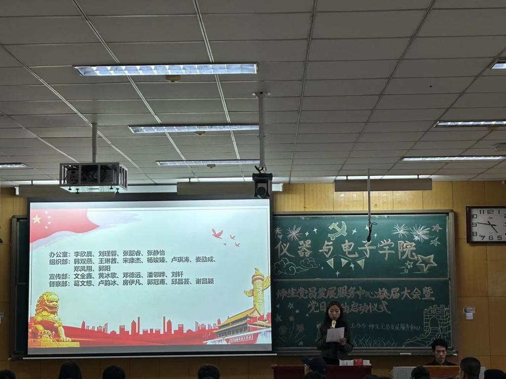 在11409H举行了2023年师生党建发展服务中心换届大会暨特色党日活动启动仪式。测控技术与仪器党支部书记戴萧嫣,研究生第二党支部书记李晨鑫,研究生第四党支部书记潘昊嵩,研究生第五党支部书记郭乐祥以及各支部学生代表参加此次活动。