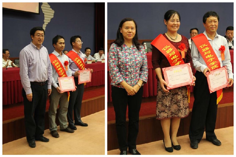 最美教师表彰决定》、 《2014-2015学年教学成果表彰决定》、《2014-2015学年科研成果表彰决定》、《2014-2015学生教育工作表彰决定》,与会领导为获奖者颁奖。