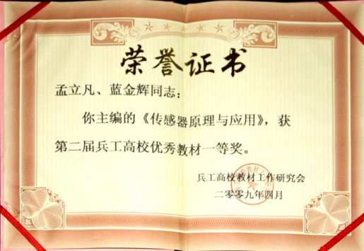孟立凡等主编,电子工业出版社,200709 | 《传感器原理与应用》,主编孟立凡等,电子工业出版社07年9月出版,2009年获兵工高校优秀教材一等奖。 |