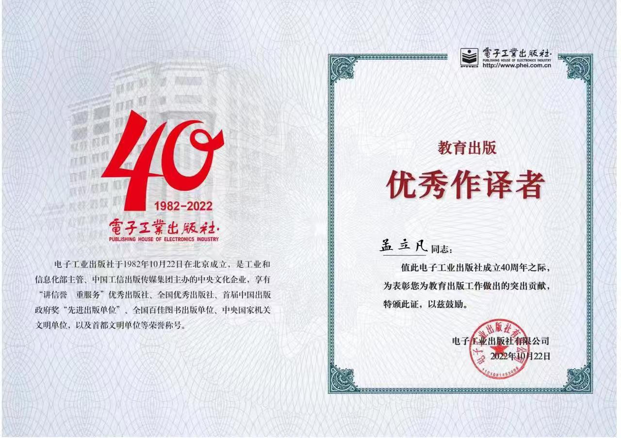 《传感器原理与应用第(第3版)》,主编孟立凡等,获中国电子教育学会2016年全国电子信息类和财经类优秀教材评选三等奖。 |